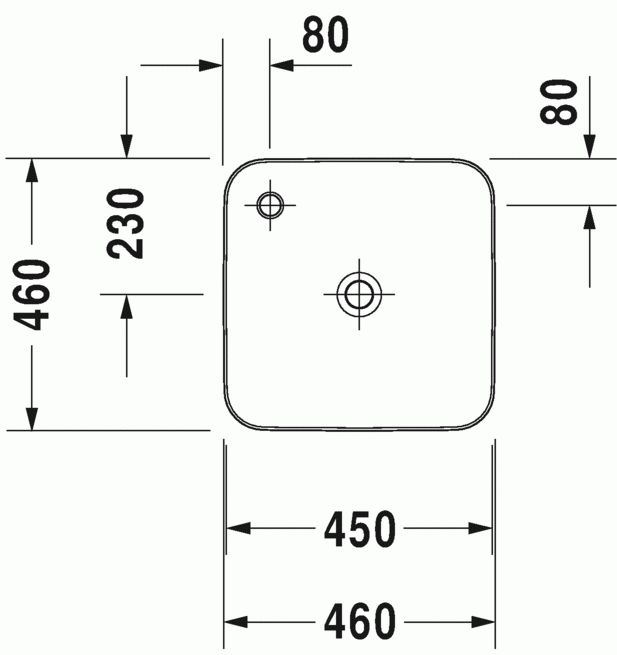 Duravit Cape Cod umywalka nablatowa 46x46cm 2340460000, kolor biały, montaż na blacie, długość 460 mm, szerokość 460 mm, głębokość 75 mm, całkowita wysokość 100 mm, z wyspą i otworem na armaturę, bez przelewu, materiał: DuraCeram - Specjalna masa ceramiczna, która oferuje większą odporność na uderzenia i wysokie temperatury.