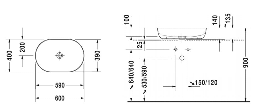 Duravit Luv umywalka nablatowa 60x40cm 0379600000, kolor biały, montaż na blacie, długość 600 mm, szerokość 400 mm, wysokość 140 mm, bez półki i otworu na baterię, bez przelewu, komplecie zawór odpływowy z białą pokrywą.