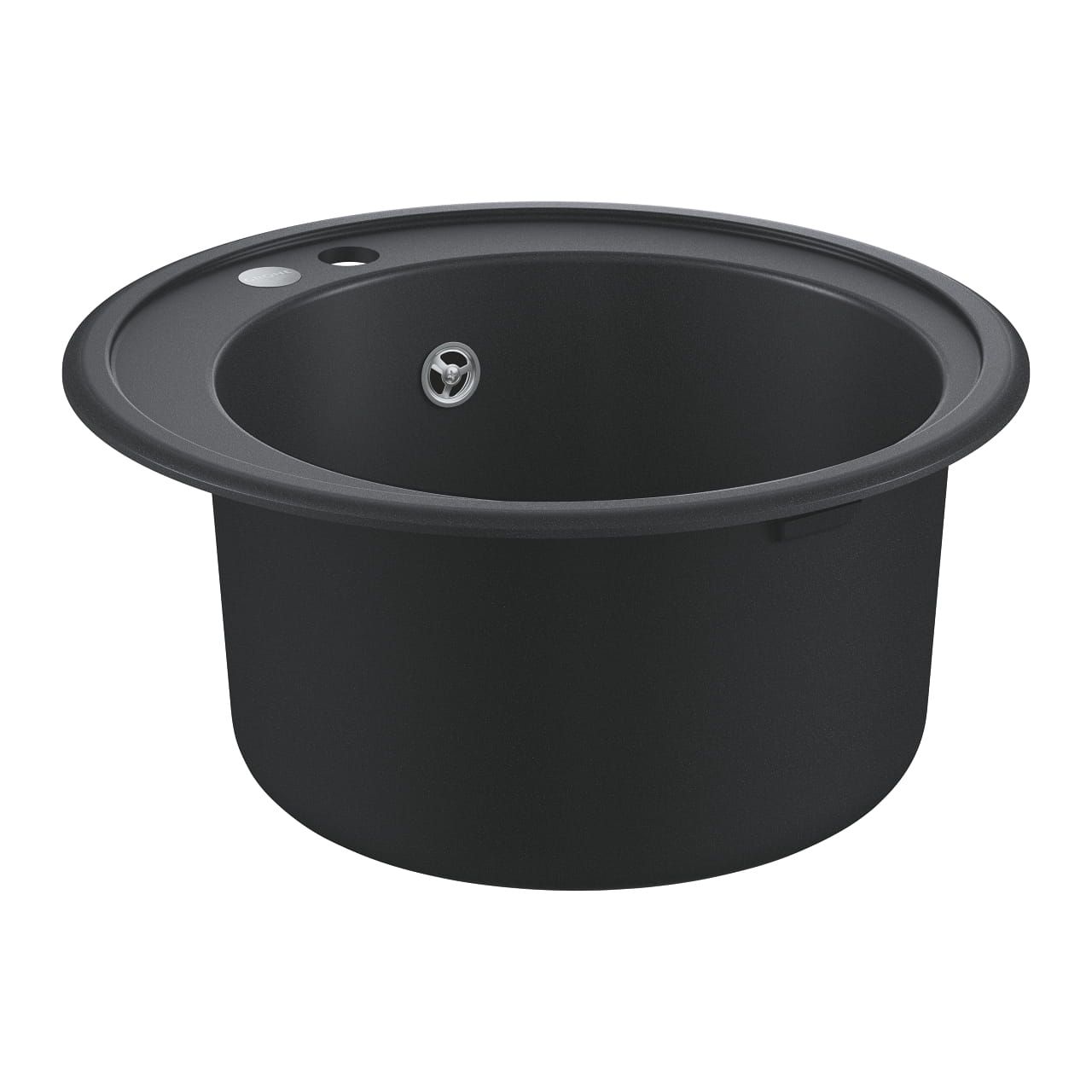 GROHE K200 zlewozmywak 1-kom. wpuszczny w blat 51cm, czarny granit 31656AP0, model: K200 50-C 51 1.0, typ montażu: wpuszczany w blat, materiał: kompozyt kwarcowy, minimalna długość szafki: 500 mm, wymiary: Ø 510 mm, 1 komora: Ø 380 x 200 mm, promień wewnętrzny komory: Ø 380, wycięcie: Ø 490 mm, w komplecie: zestaw odpływowy z syfonem, sitko na odpadki, zestaw montażowy, opcjonalnie: automatyczny odpływ 40 986 SD0, ilość uchwytów montażowych w zestawie: 3, odporność termiczna do 280° C.