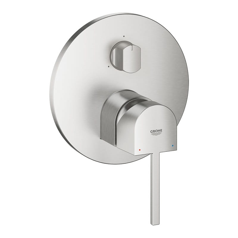 Grohe Plus bateria podtynkowa do obsługi 3 odbiorników, element zewnętrzny, stal nierdzewna 24093DC3, do montażu gotowego z Rapido SmartBox 35600000 - zamawiany osobno, GROHE SilkMove głowica ceramiczna 46 mm, GROHE StarLight powłoka chromowa, GROHE QuickFix rozeta ścienna (z uszczelnieniem, zakryte mocowania), metalowa rozeta ścienna, regulacja 6°, metalowa dźwignia, przełącznik trójdrożny, wydajność przepływu: wyjście A = 27 l/min, wyjście B = 27 l/min, wyjście C = 27 l/min.