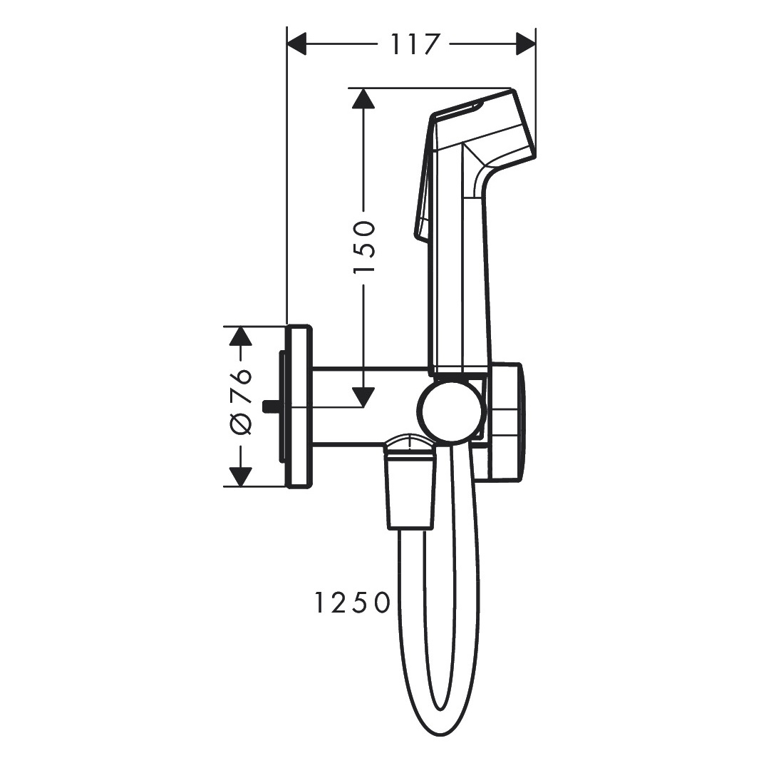 HansGrohe Bidette główka prysznicowa 1jet E EcoSmart z mieszaczem, uchwytem i wężem prysznicowym 125 cm, czarny chrom szczotkowany 29232340, zestaw elementów zewnętrznych, zestaw składa się z główki prysznicowej Bidette z zawórem odcinającym, ze zintegrowanym uchwytem prysznicowym i węża prysznicowego, wielkość główki: 28 mm, QuickClean: Osad z kamienia można po prostu zetrzeć palcem, maksymalne natężenie przepływu przy 3 barach: 6,2 l/min, nie nadaje się do użytku w krajach, w których obowiązuje norma PN-EN 1717, do węży z nakrętką stożkową lub cylindryczną, obrotowa nakrętka zapobiega plątaniu się węża, długość węża prysznicowego: 1250 mm, typ przyłącza: zestaw podstawowy z zaworem zwrotnym, zintegrowany uchwyt, metalowe wsporniki ścienne, montaż ścienny: montaż za pomocą śrub, podkładka filtra do przepłukiwania, nie jest bezpośrednio zabezpieczona przed przepływem zwrotnym, taksonomia UE: max. 8 l/min – nie wyrządza poważnych szkód (DNSH).