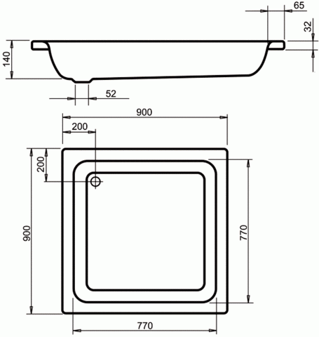 Kaldewei Sanidusch brodzik kwadratowy 90x90x14cm model 396, wykończenie przeciwpoślizgowe 3311.3000.0001, kolor biały, wykonany ze stali emaliowanej o grubości 3,5 mm, długość 900 mm, szerokość 900 mm, głębokość 140 mm, średnica odpływu 52 mm, średnica powierzchni przeciwpoślizgowej 435 mm. Gwarancja 30 lat.