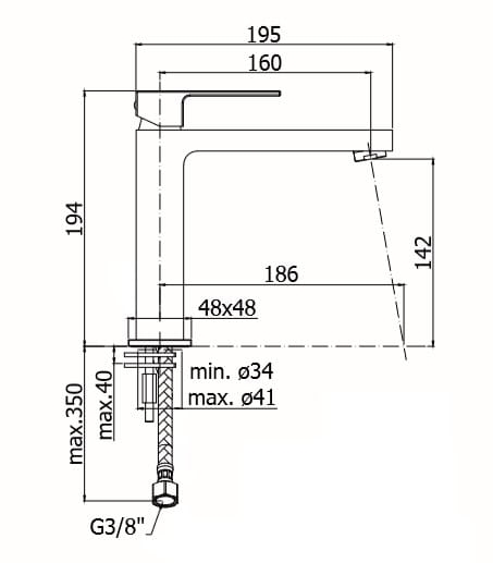 Paffoni Elle bateria umywalkowa XL, bez korka EL074CR, kolor chrom, głowica ceramiczna, montaż sztorcowy 1-otworowy, wylewka z perlatorem, w komplecie elastyczne wężyki przyłączeniowe 3/8" oraz elementy montażowe.