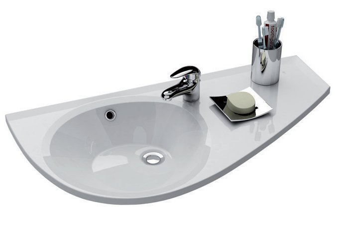 Ravak Avocado P umywalka 85x45cm XJ1P1100000, kolor biały, umywalka z odlewanego marmuru (konglomerat), szerokość 850mm, głębokość 450mm, z otworem na baterię, z przelewem, z blatem po prawej stronie, montaż ścienny. Gwarancja 2 lata.