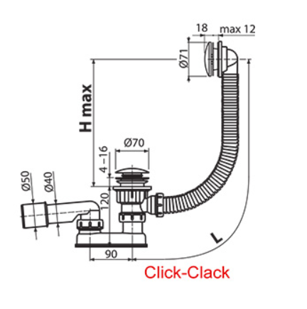 Wannowy komplet odpływowy z przelewem ClickClack Ravak X01377, elementy zewnętrzne kolor chrom. Gwarancja 2 lata.