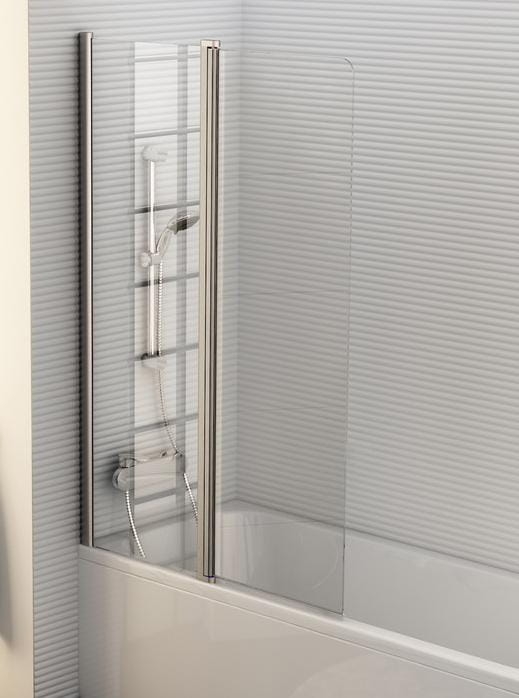 Ravak Chrome parawan nawannowy CVS2-100 lewy, bright alu 7QLA0C00Z1, kolor profili połysk - polerowane aluminium, wypełnienie ze szkła hartowanego bezbarwnego o grubości 6 mm, montaż ścienny na wannie, strona lewa, wysokość 1500 mm, szerokość części stałej 525 mm, szerokość części ruchomej 465 mm. Parawan składa się jednej stałej i jednej ruchomej części. Konstrukcja profilu umożliwia przesunięcie części ruchomej o 90 stopni na zewnątrz a do wewnątrz wanny złożyć na części stałej. Szerokość części stałej umożliwia wygodne umieszczenie obok wanny umywalki Chrome. Część ruchoma otwiera się maksymalnie do krawędzi umywalki umożliwiając łatwiejsze czyszczenie parawanu.