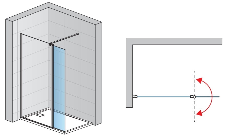 SANSWISS Walk-In EASY STR4P ścianka boczna wolnostojąca 100cm+40,6cm STR4P1000907+BTE304060907, profile w kolorze białym matowym, wypełnienie ze szkła hartowanego o grubości 8 mm z powłoką AquaPerle, zakres regulacji ściany 100 cm 982 - 1007 mm od ściany do zewnętrznego rantu szyby, szerokość od ściany do końca ścianki ruchomej ustawionej pod kątem 180 stopni 1400 mm, strona montażu lewa / prawa, element ruchomy 180 stopni, szkło hartowane 6 mm, szerokość 406 mm, sposoby montażu: na brodziku, na posadzce, w komplecie poprzeczka stabilizująca o długości 1250 mm, wysokość szkła 2000 mm, całkowita wysokość z porzeczką stabilizującą 2017 mm.