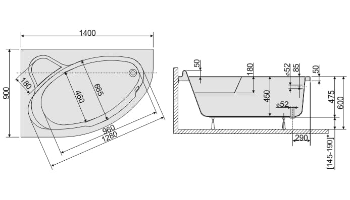Asymetryczna forma pozwala zamontować wannę w każdej łazience. Wanna posiada specjalnie wyprofilowane siedzisko ułatwiające wykonywanie zabiegów pielęgnacyjnych. 45 cm głębokość wanny zapewnia optymalne warunki kąpieli.