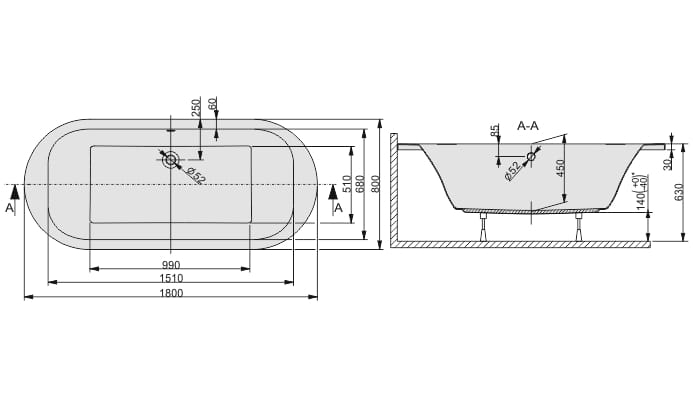 Wanna owalna WOW/FREE wykonana jest z akrylu sanitarnego i kompletowana ze stelażem. Odpływ umieszczony jest w środkowej części wanny. 45 cm głębokość wanny zapewnia optymalne warunki kąpieli.