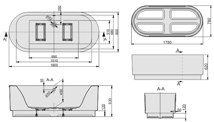 Wanna owalna WOW/FREE wykonana jest z akrylu sanitarnego i kompletowana ze stelażem. Odpływ umieszczony jest w środkowej części wanny. 45 cm głębokość wanny zapewnia optymalne warunki kąpieli.