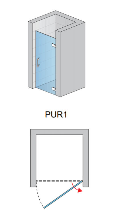 Sanswiss PUR1 drzwi skrzydłowe produkowane na wymiar szerokość do 100 cm, prawe, profil chrom, szkło bezbarwne PUR1DSM11007, drzwi skrzydłowe, zawiasy z funkcją unoszenia, otwierane tylko na zewnątrz,  wypełnienie ze szkła hartowanego o grubości 8 mm z powłoką AquaPerle, uszczelka magnetyczna, wysokość 2000 mm,  szerokość wejścia rozmiar minus 47 mm.