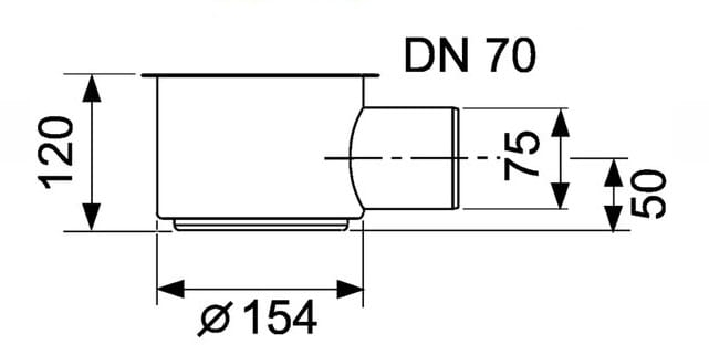 TECEdrainline kolano odpływowe z syfonem "max" 65002, duże kolano odpływowe do rynny prysznicowej TECEdrainline do montażu obrotowego na korpusie rynny, do przyłączania bocznego do przewodu kanalizacyjnego DN 70, z wyjmowaną rurką spiętrzającą syfonu „ wysokość montażowa dolna krawędź odpływu do górnej krawędzi rynny prysznicowej = 148 mm „ Wydajność odpływowa rynny prysznicowej z rusztem ozdobnym „basic“ = 1,5 l/s „ wysokość wody stojącej = 60 mm, zgodnie z PN - EN 1253 > 50 mm.