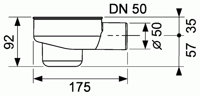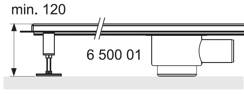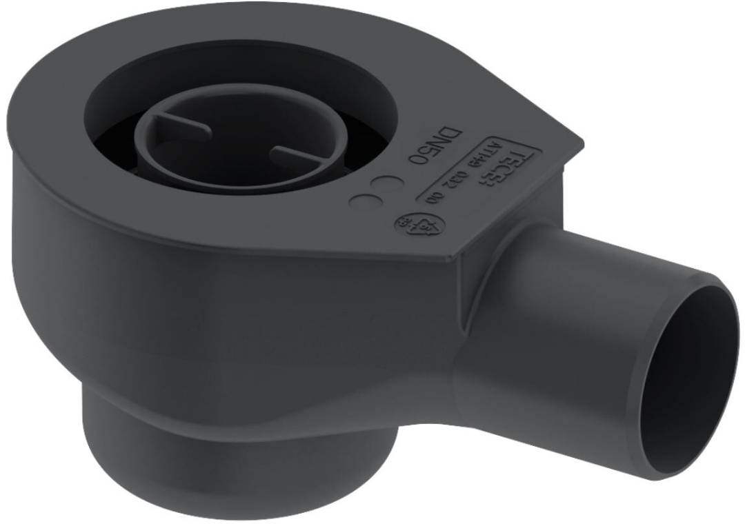 TECEdrainline kolano odpływowe z syfonem "standardowe" 650001, znormalizowane do rynny prysznicowej TECEdrainline do montażu obrotowego na korpusie rynny, do przyłączania bocznego do przewodu kanalizacyjnego DN 50, z wyjmowaną rurką spiętrzającą syfonu „ wysokość montażowa dolna krawędź odpływu do górnej krawędzi rynny prysznicowej = 120 mm „ wydajność odpływowa rynny prysznicowej z rusztem ozdobnym „basic“ = 0,8 l/s „ wysokość wody stojącej = 50 mm, zgodnie z PN - EN 1253.