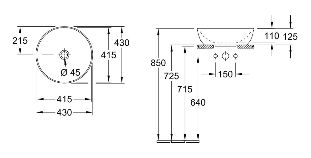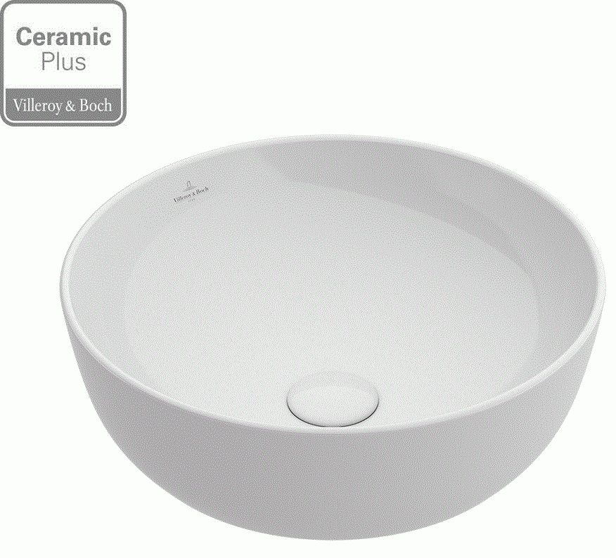 Villeroy&Boch Artis CeramicPlus umywalka nablatowa 43cm 417943R1, kolor biały weiss alpin, materiał TitanCeram, montaż na blacie, średnica 430 mm, wysokość 125 mm, głębokość 110 mm, bez otworu na baterię, bez przelewu.
