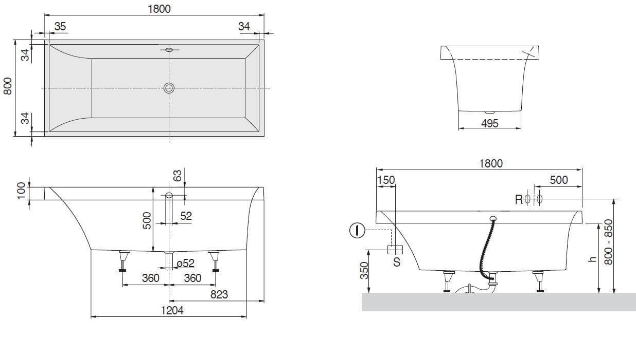 Villeroy&Boch Squaro wanna prostokątna 180x80 cm BQ180SQR2V-01, kolor biały, wanna wykonana z Quaryl ® Villeroy&Boch o grubości do 18 mm, długość 1800 mm, szerokość 800 mm, głębokość 500 mm, pojemność z jedną osobą 215 litrów, wysokość zabudowy 555 mm, waga 55 kg, nóżki w komplecie o zakresie regulacji 145 - 180 mm, wymaga przedłużonego systemu przelewowo-odpływowego, możliwość zastosowania zagłówka. Gwarancja 10 lat.